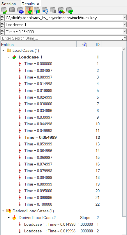 Load Caseビュー は、使用可能なすべての荷重ケースおよびシミュレーションを階層構造で表した一覧です。