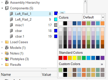 エンティティの色を変更するには、Resultsブラウザ内の現在のカラーボックスをクリックしてドロップダウンメニューからテーマを選択し(Default、MedianまたはRainbow)、パレットから希望の色をピックします。 図 1. カラーピッカー