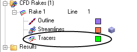 トレーサーの定義は、Resultsブラウザ(CFD Rakesフォルダの下に位置)内のエントリも生成します。トレーサーのエントリを用いて、特定のレーキのトレーサーの表示を管理することができます。