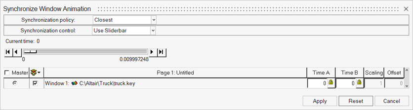注: 現在のところ、HyperMeshのアニメーションでは同期はサポートされていません。