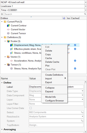 HyperView - MultiCoreプロファイルでは、結果の定義はLoadcaseタブで読み込まれたアニメーションステップについてのみキャッシュされます。後続の段階で追加のステップ / フレームが読み込まれた場合、キャッシュされた(しかしプロットはされていない)定義は自動的に更新されます。キャッシュされた定義の緑色のチェックマークが、部分的に読み込まれた進捗バーに変わり、データが追加のステップには利用できないことを示します。また、キャッシュされた定義をプロットしアニメーション表示すると、追加のフレーム上でN/Aプロットが確認されます。追加のステップ用のデータを取得するには単に、定義を再度キャッシュします。