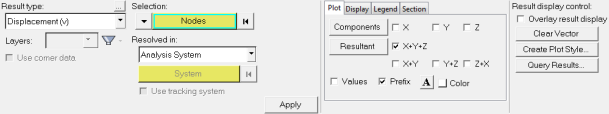 Vector ベクトルプロットのオプションを設定するには、Vectorツールを使用します。 ベクトルベースの結果について、個々のベクトルの成分、せん断、および合成をプロットできます。 PlotツールからVectorツールをクリックします。 図 1. 図 2. Vectorパネル 重要: Envelopeユーティリティは、ベクトルプロットと使用することを想定していません。ベクトルプロットと共に使用されると、HyperViewは単に合成荷重ステップリスト内の最後の荷重ステップを描きます。