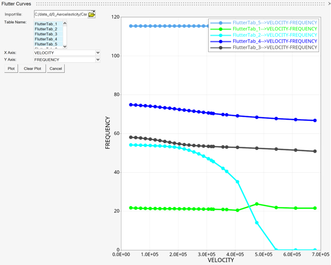 Aeroelasticityリボンから Flutter Curveツールをクリックします。