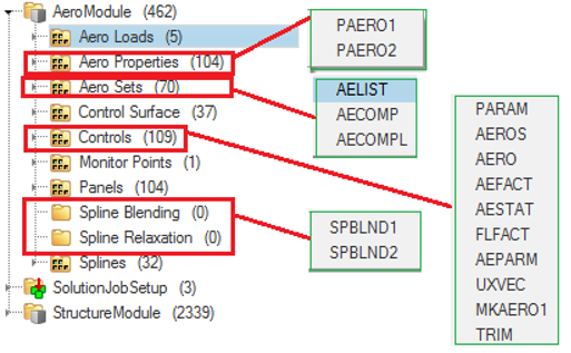 プロパティ、セット、入力および出力コントロールなどの追加のデータ定義は、Aeroelasticityブラウザおよびエンティティエディターで定義できます。
