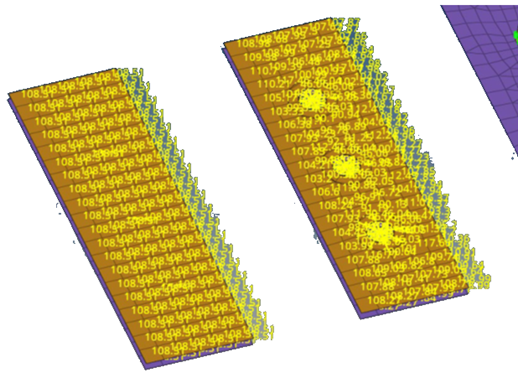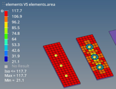 Dataname Viewerツールを使用して、要素や節点上に、これらのデータ名と属性に関連するスカラープロットまたは新しいマーカープロットを表示します。要素については、関連するプロパティと材料にまでリンクを直接拡張できます。