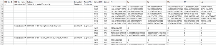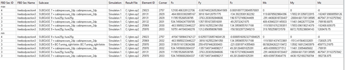 - 1つまたは複数のフリーボディ断面と荷重ケースの、力とモーメントが含まれたテーブルを作成します。