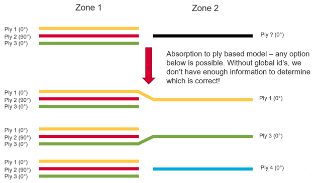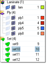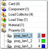 変換が完了すると、積層材とプライが作成されます。しかし、グローバルIDや名前がプロパティで定義されていない場合、ゾーンベースのモデルからプライベースのモデルへの変換は与えられている情報だけで行うことができない場合があります。特に積層材の積み重ね順序については、多くの可能性が存在します。必要に応じて、積層材を確認し、順序を変更することを推奨します。図 3. FE Absorb後、モデルにプライ、積層材およびPCOMPPが作成される