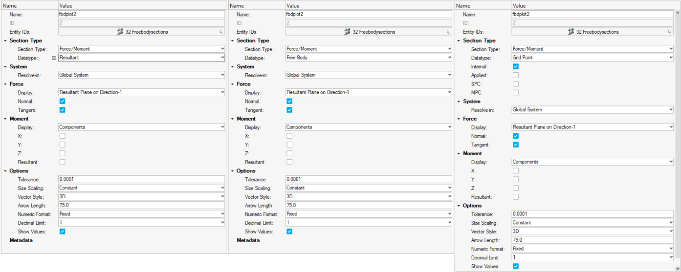 力/モーメントのプロットでメッシュベース(support==Mesh)のフリーボディ断面を使用することができます。したがって、エンティティレベルでResolve-inを Analysis systemに設定することができます。