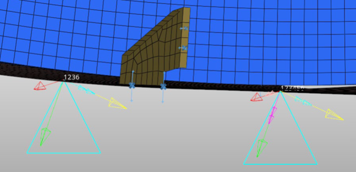 ツールを使用して、節点に割り当てられたSPC/SPCDを、関連する解析(出力)座標系内に表示します。このツールによって、選択された自由度(DOF)の係数と、拘束が適用される節点に関連付けられた座標系のIDが表示されます。