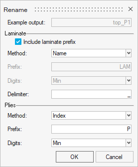 Compositeブラウザで、LaminateまたはPlyエンティティを右クリックし、Rename Pliesを選択します。