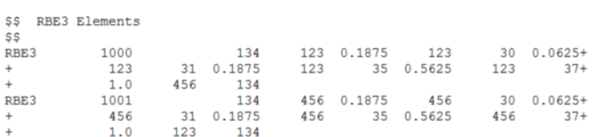 図 1. . 二重RBE3の作成:従属節点と最後の独立節点に同じ節点IDが使用されています。