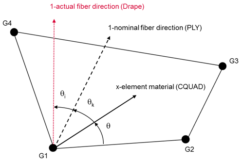 ドレープシミュレーションでは、プライ繊維の公称の方向(向き)と厚みの補正値が得られます。これらの補正値は、プライエンティティに割り当てられたドレープテーブルに反映されます。HyperMeshで使用可能な方法は次のとおりです:図 1.