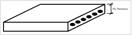 The ply thickness is typically defined as the final cured thickness of a single ply