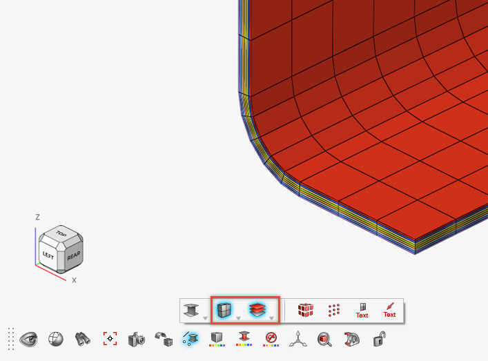 The thickness of ply layers can be scaled for visualization by clicking Preferences > Graphics > Ply visualization thickness factor.