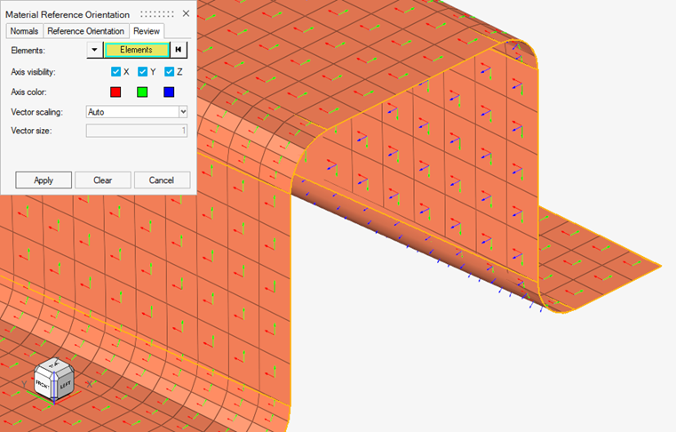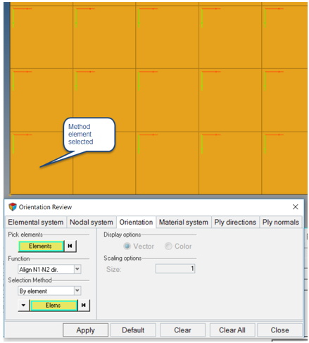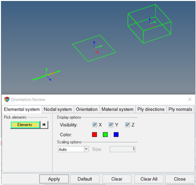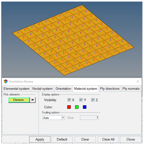 Pick Elements | 材料座標系のx、y、z方向をプロットする要素を選択します。 |