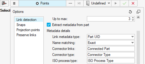 - 有効なConnector Linkがどの程度あるかの情報。オプションは、"Exact "または "Partial "です。"Partial"オプションは、"Connector link"の文字列と一致するパート/プロパティを探し、リンクとして追加します。