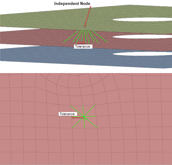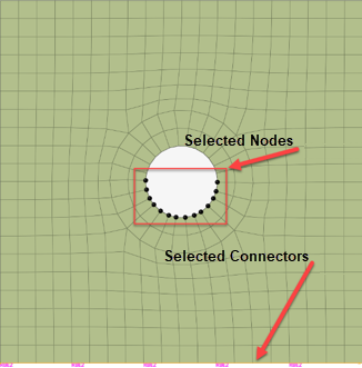 ポイント/節点のコネクターへの投影時のトレランスは、最も遠い節点からコネクターまでの距離がトレランスより小さくなるように十分に大きくする必要があります。 - ドロップダウンメニューから、NodesまたはPoints を選択して、モデル上の節点またはポイントを選択します。