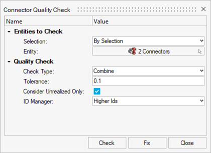 Quality controllerは、コネクターの品質チェックと有限要素作成をともなうリアライゼーションに使用します。