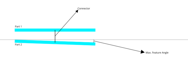 コネクターのリンクが互いに平行かどうかを、Max Feature Angle を考慮してチェックします。最初のチェックが満たされ、Diameterが使用される場合、設定された直径を持つリアライゼーションに対して平行領域が十分な大きさであることを確認するチェックが実行されます。