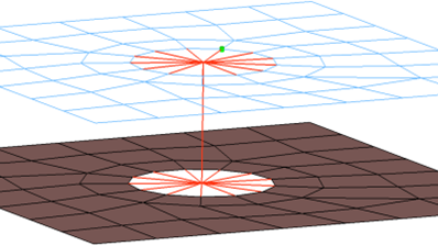 bolt (LINK10) 要素タイプ‘Link10’要素のbodyを作成します。 制約事項: ANSYSでのみ使用できます。 headにCERIG要素を作成します。head要素を投影し穴を形成する隣接要素に接触させます。Link10要素用のプロパティと材料が作成されます。図 1.