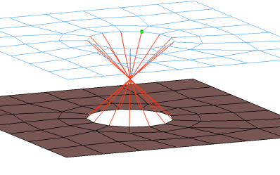 KINCOUP要素を作成し、それを投影して穴を形成する要素に隣接する節点に結合します。コネクターは穴のエッジ、穴の中心、その中間、穴またはワッシャー層を形成する2列目に配置できます。