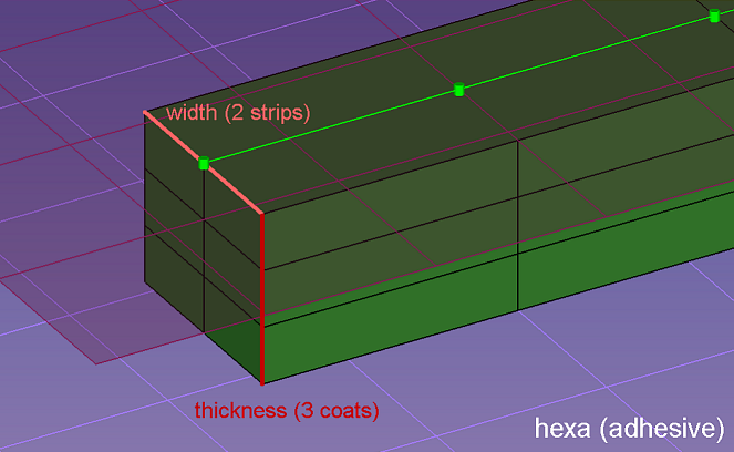 width | シームと直角方向の連続したヘキサ溶接の幅を定義します。 注: hexa (adhesive) および hexa (RBE2-RBE3)にのみ有効です。 |