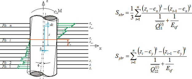 - 各層のベアリング剛性を合計した後 n=複合板の積層数:ここで、