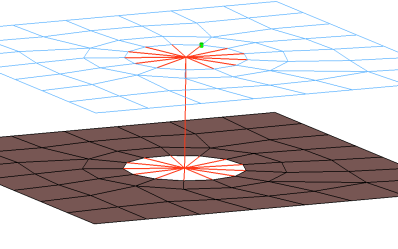 headおよびbody用にRBE2要素を作成します。head要素を投影し、穴を形成するシェル要素に隣接する節点に結合します。コネクターは穴のエッジ、穴の中心、その中間、穴またはワッシャー層を形成する2列目に配置できます。従属節点は、x、y、z、およびx、zの回転の自由度が拘束されます。