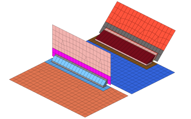 Skip Imprint | 四角形溶接要素を作成しますが、リンクのメッシュは変更しません。 代わりに、要求されたHAZを表す追加要素を作成します。これらの要素は、^conn_imprintコンポーネントに編成されます。 これらの要素は、ユーザーのニーズに合わせて操作された後、後の手動でのインプリントで使用できます。これは、交差するコネクターを扱う場合など、標準のインプリント機能がエラーになる複雑な領域で役に立ちます。 注: 四角形溶接要素はこのリンクには結合されません。結合はさらに注意が必要です。 |
