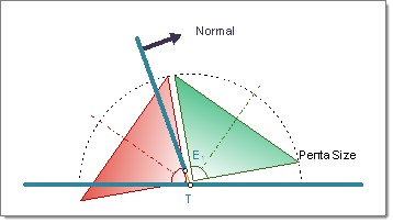 | right-angled | 二等分線中心に直角三角形のペンタが作成されます。このチェックボックスを非選択にし、適合角度のペンタを作成します。 ![]() ![]() 注: penta (mig)およびpenta (mig + T)でのみ使用できます。