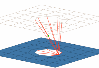 これは、コネクター位置に最も近い節点を結合し、結合されているコンポーネントに隣接する要素上の最も近い節点に投影します。