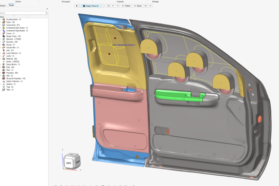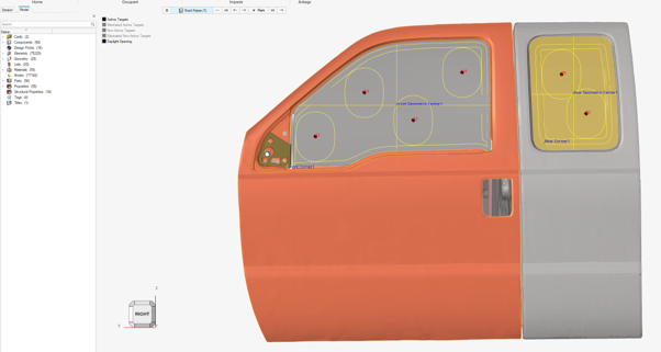 Ejection Mitigation (EM) は、FMVSS-226ルールに従った自動ターゲットマーキング、ヘッドフォームインパクターの自動位置決め、および選択されたすべての衝突位置に対してすぐに実行できるソルバーデックの自動エクスポートに使用します。