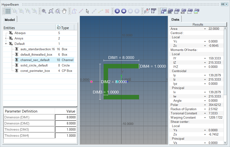 HyperBeamが開きます。これを使用して、ビーム断面データを作成および制御できます。また、デフォルトではソリッド断面作成ダイアログも開きます。