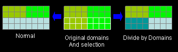Divide by Domain 選択された要素が既に属しているドメインに基づいて、新しい複数のドメインを作成します The different colors in図 4. 例:Divide by Domains. 異なる色が各ドメインを表しています。
