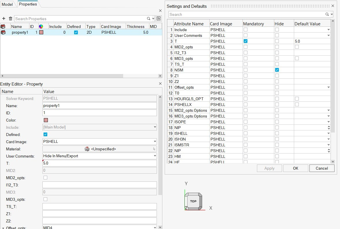 設定は、EntityDefaults.xmlという名前のXMLファイルに書き込まれます。このファイルは、 Windowsの場合はC:\Users\<username>\Documents\HyperWorksDefaults\Entities\<SolverProfile>に、 Linuxの場合は<user home>/HyperWorksDefaults/Entities/<SolverProfile>にあります。