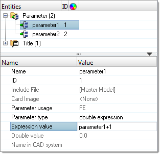 Parameter entities parameterize FE entity and geometric entity attributes.