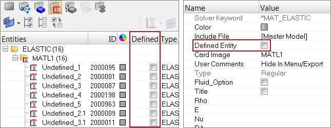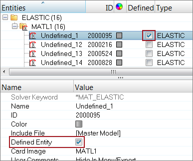 - If Defined is active, the entity will be written to the solver deck.