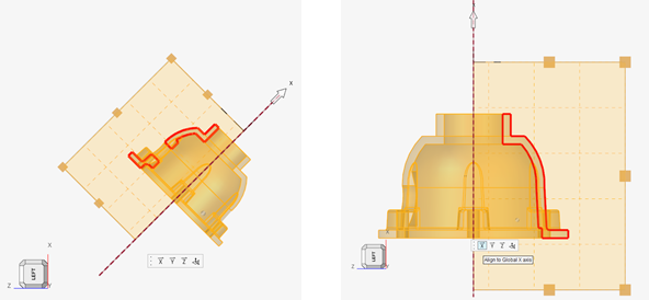 グローバル軸に合わせるには、X、Y、Zをクリックします。ターゲットモデルの向きをベクトルツールを使用する場合は、