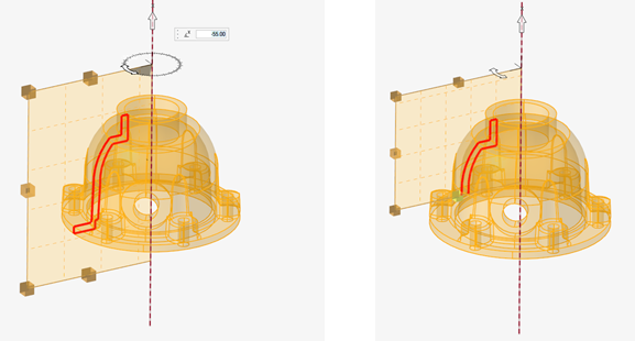 をクリックし、二次断面エンティティを追加します。回転マニピュレーターとダイナミックプレビューを使用して、目的の位置に配置します。 複数の二次断面を順次追加することが可能です。