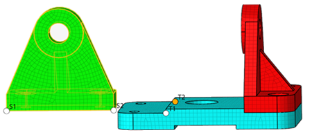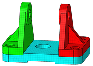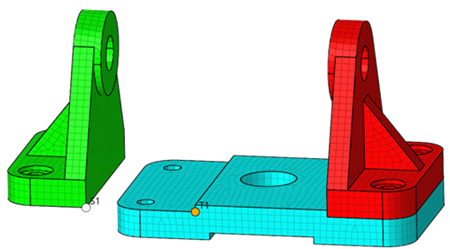 干渉認識オプションをアクティブにした場合、2つのコンポーネントの一方を動かしてこれらのコンポーネントを干渉させようとすると、コンポーネントが干渉ポイントまたはそれより前で止まります。この位置を越えてコンポーネントをドラッグしようとすると、このコンポーネントは貫通していない位置に留まり、この動きをブロックしているコンポーネントのフィーチャーエッジがオレンジ色でハイライト表示されます。ブロックしているコンポーネントを貫通するようにコンポーネントをドラッグし続けた場合、ドラッグされたコンポーネントは再び動き出し、次の干渉に遭遇した時点で止まります。図 9.