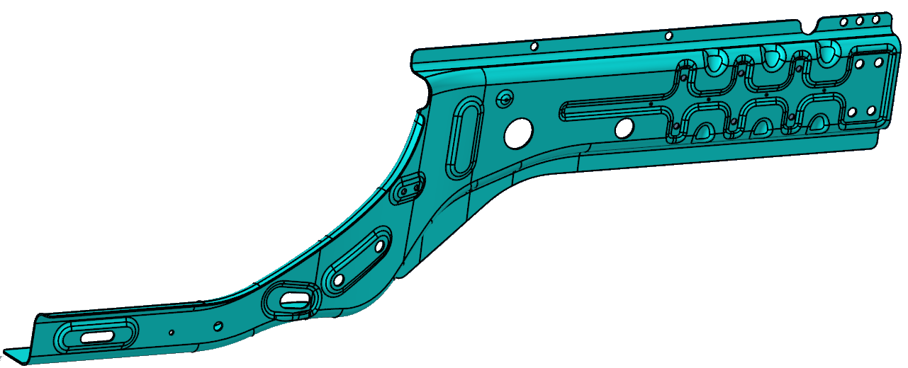 Midsurfaces(中立面):Automatic(自動) ツールは、シートメタルスタンピング、リブつきのプレス加工プラスチックパーツや、幅と奥行きより板厚が小さいようなプレートから成るその他のパーツ等の中立面を抽出するのに使用します。