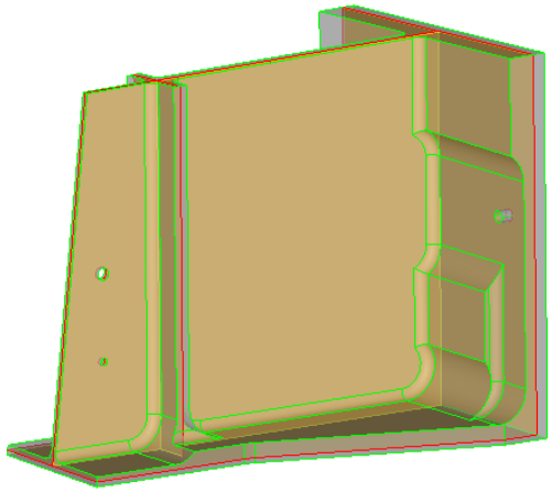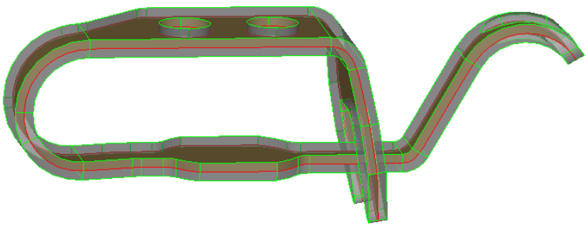 - モデルの中で、平面の部分を中間サーフェスとして使用できる場所を特定します。モデル内の残りの場所、つまり、中立面サーフェスとして使用できない平面位置には、Offsetオプションと同じアルゴリズムが使用され、モデルの側面からのオフセットによって中立面が作成されます。