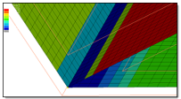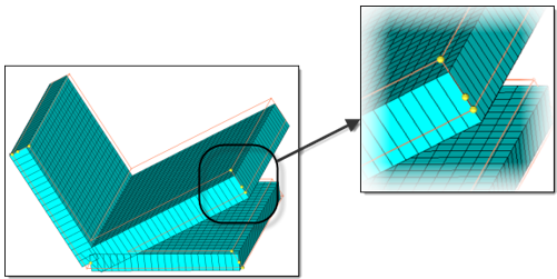 - T接合またはコーナー近くの板厚値が補間されている場合に使用するスケーリングファクターを入力します。1より小さい値が指定された場合、接合部 / コーナー部により近くなるにつれて板厚が線形に減少します。ゼロが指定された場合、質量保存により板厚を概算します。これが1に設定されている場合、板厚はスケールなしで外挿 / 内挿されます。1より大きい値が設定されている場合、結合部により近くなるにつれて板厚が増分されます。