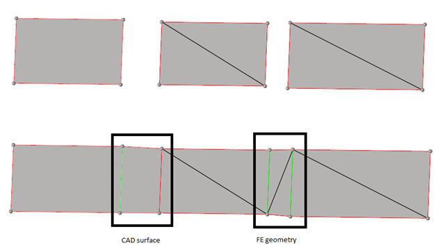 節点でメッシュおよびサーフェスを作成する場合、新しいサーフェスまたはメッシュが自動的にステッチされます(デフォルト設定)。