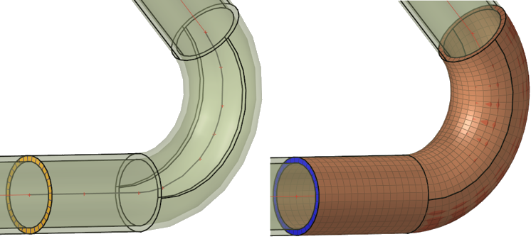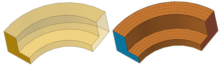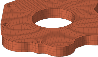 ソリッドマップツールは、選択したソリッドが既にマッピング可能であれば、ソリッド上に直接3Dメッシュを自動作成できますが、ヘキサメッシングは既存の2Dメッシュに依存し、入力したパラメータに基づいて3Dメッシュに外挿されます。