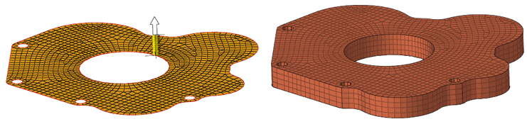- 板厚の値を入力するか、マニピュレータをドラッグして、要素の法線に沿ってヘキサメッシュを作成します。