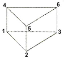 縮退六面体要素は、Hex8またはHex20要素が縮退されてウェッジ要素(Penta6またはPet15)になったものです。Penta6(要素コンフィギュレーション206)は、6節点が図 1に示す順序の3Dの1次三角形プリズム形状要素です。Hex8(要素コンフィギュレーション208)は、8節点が図 2に示す順序の3Dの1次三角形ブロック形状要素です。縮退六面体(要素コンフィギュレーション206)オプションは、8節点が図 3に示す順序の3Dの1次三角形プリズム形状要素です。