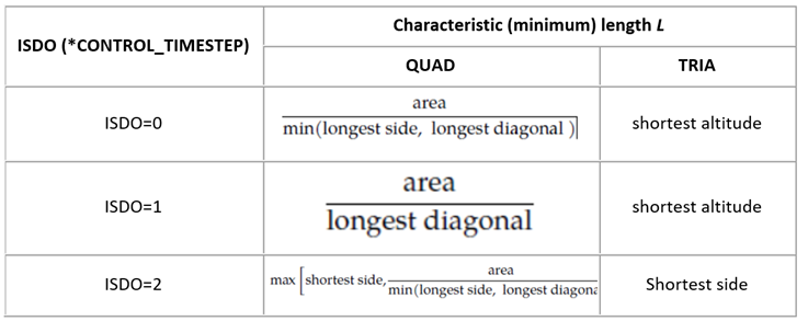 Hughes-Liuビームおよびトラス要素の場合、時間ステップサイズは次の式によって求められます: