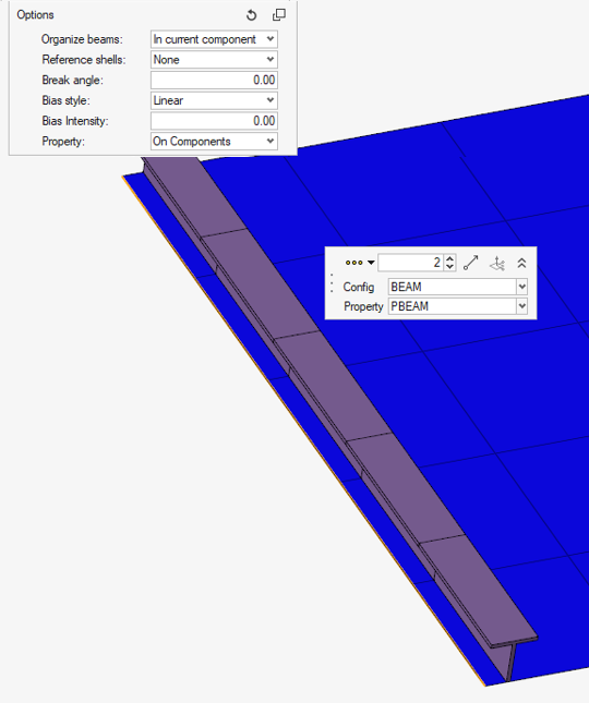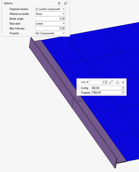 - ビーム断面が選択された場合、要素タイプとプロパティカードはマイクロダイアログから指定します。PBEAML/PBARLが選択されていても、ビーム断面が有効でない場合、対応するPBEAM/PBARが作成されます。