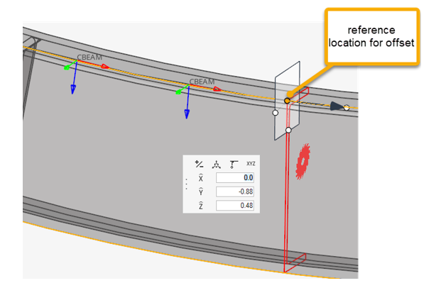 基準点(向きとオフセットを参照)は、切断面とターゲット要素の交点です。これにより、参照方向とオフセットが定義されます。